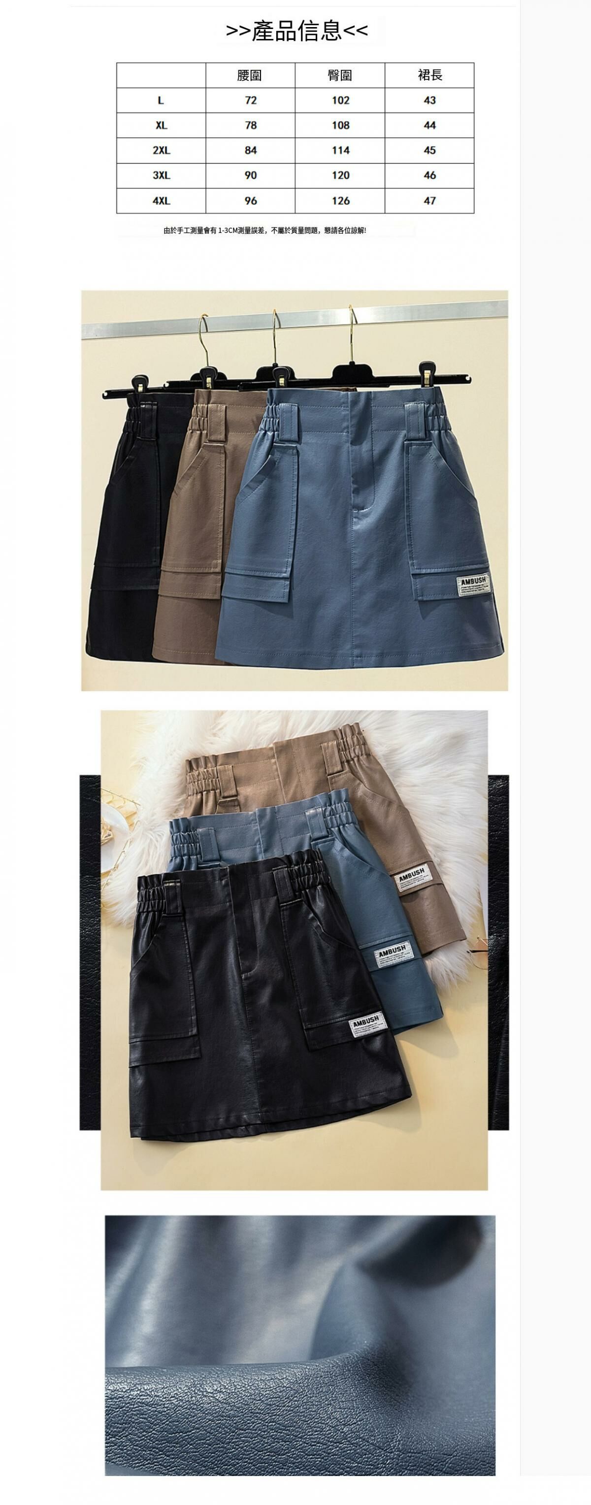 熱賣高腰PU皮半身裙【藍色】【L-4XL碼】(下單後請聯絡客服確認發貨尺碼)