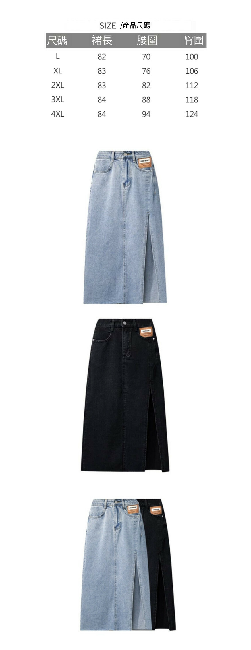 熱賣高腰開叉牛仔半身裙【藍色】【M-4XL碼】(下單後請聯絡客服確認發貨尺碼)