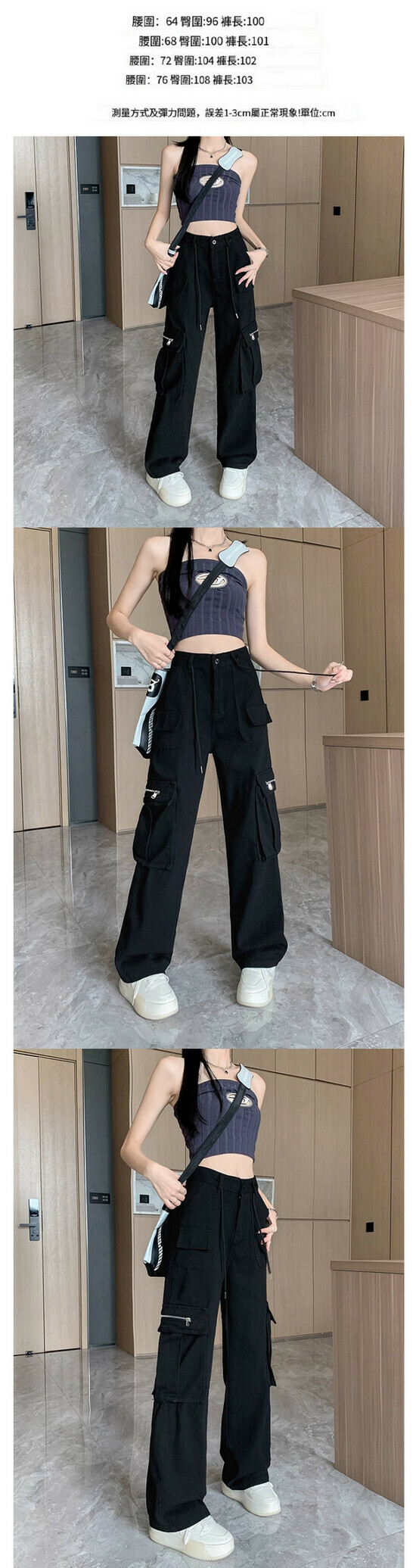 熱賣高腰工装牛仔裤【黑色】【S-XL碼】(下單後請聯絡客服確認發貨尺碼)