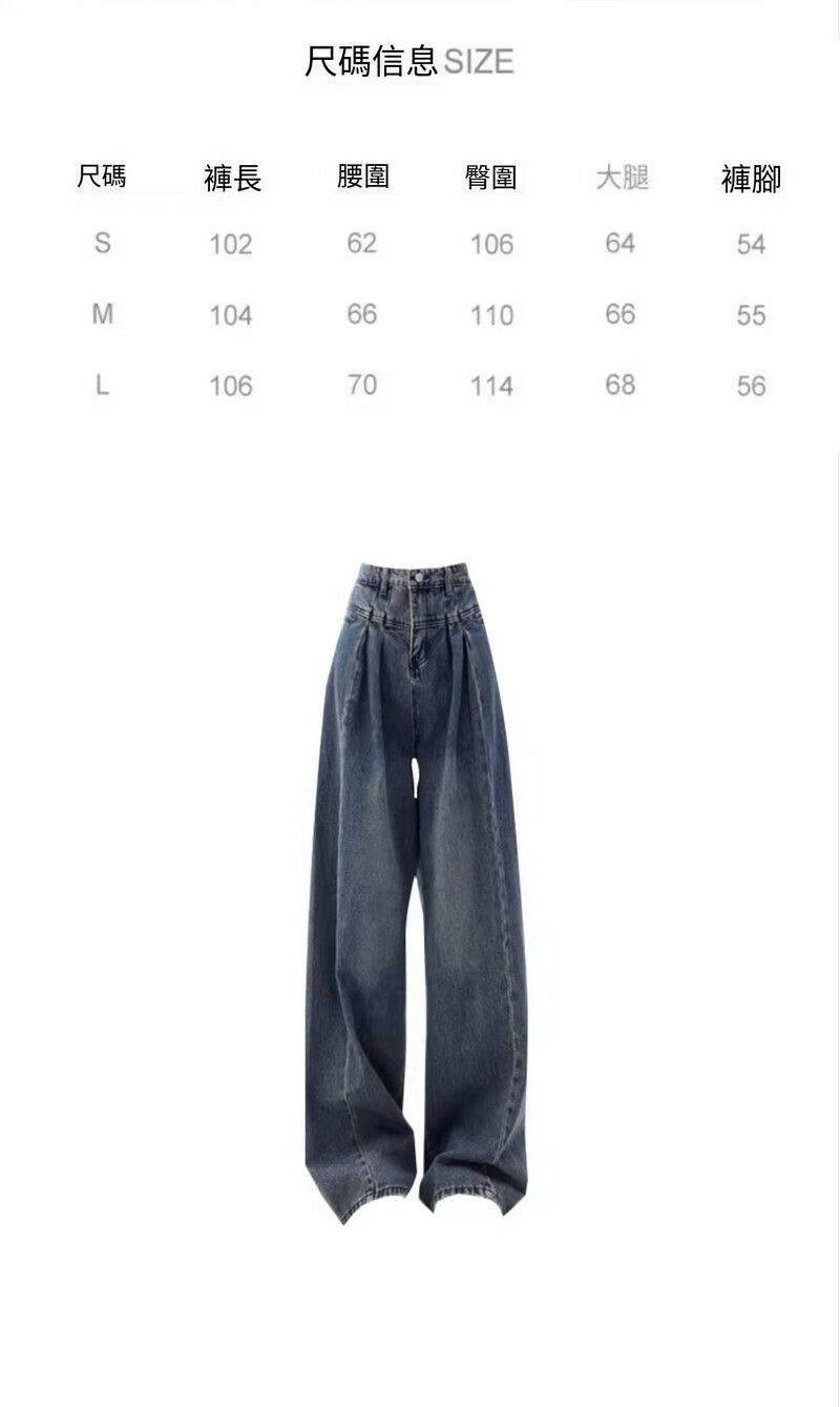 熱賣高腰寬鬆闊腿牛仔褲(深藍色 M碼-L碼)(下單後請聯絡客服確認發貨尺碼)