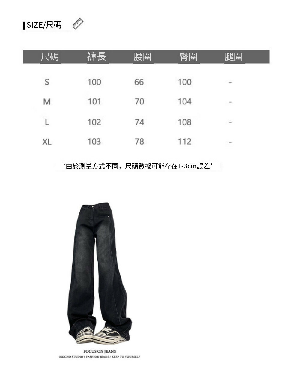 熱賣高腰直筒牛仔褲【黑灰色】尺碼【S碼-XL碼】【下單後請聯絡客服確認發貨尺碼】