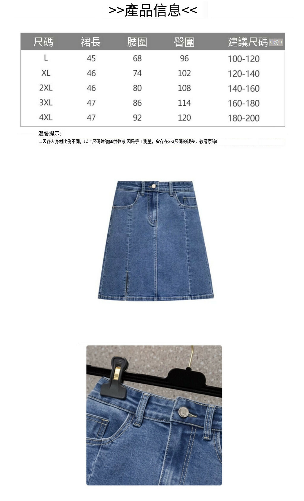 熱賣包臀牛仔半身裙【藍色】【L-4XL碼】(下單後請聯絡客服確認發貨尺碼)