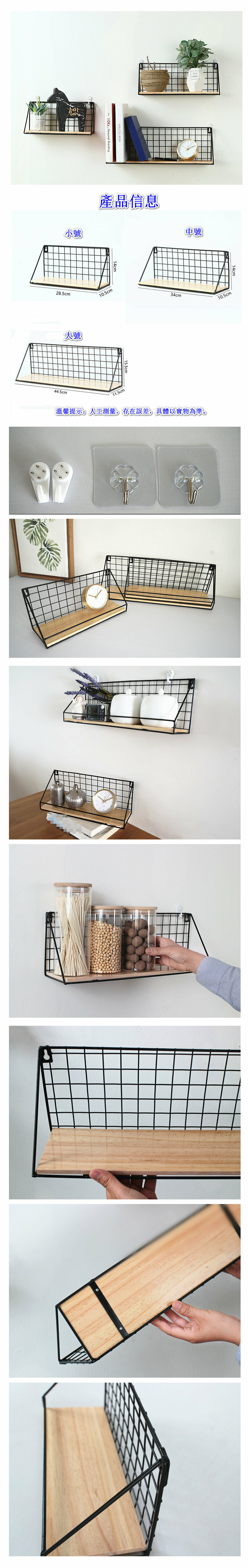 熱賣免打孔牆掛式收納掛架置物架【黑色橫梁中號】【規格:34*10.5*14cm】