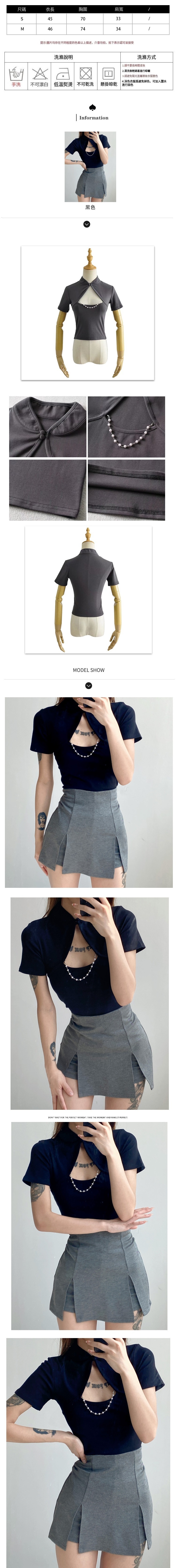 熱賣鏤空珠珠短袖T卹(黑色)(S/M碼)(下單後聯絡客服確認發貨尺碼)