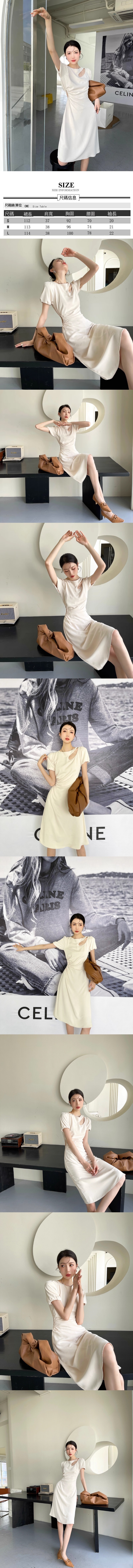 熱賣鏤空泡泡袖連衣裙(杏色)(S-L碼)(下單後聯絡客服確認發貨尺碼)