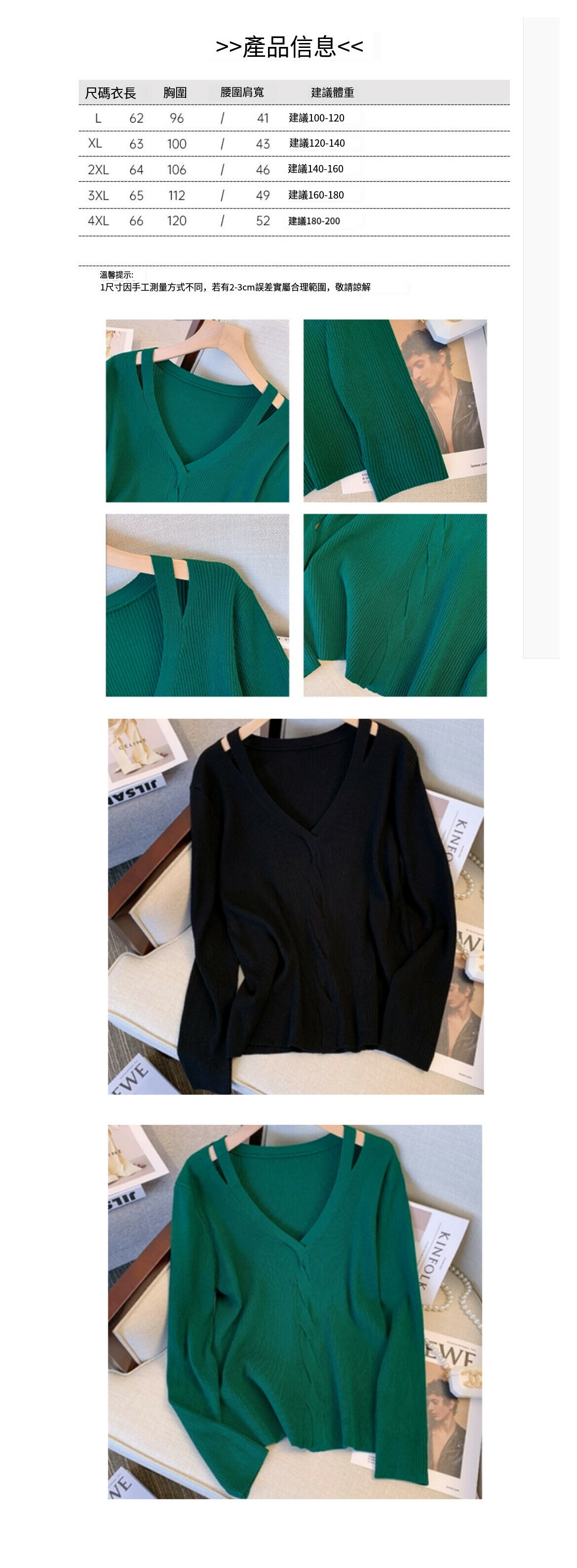 熱賣鏤空顯瘦v領針織衫【黑色】【L-4XL碼】(下單後請聯絡客服確認發貨尺碼)