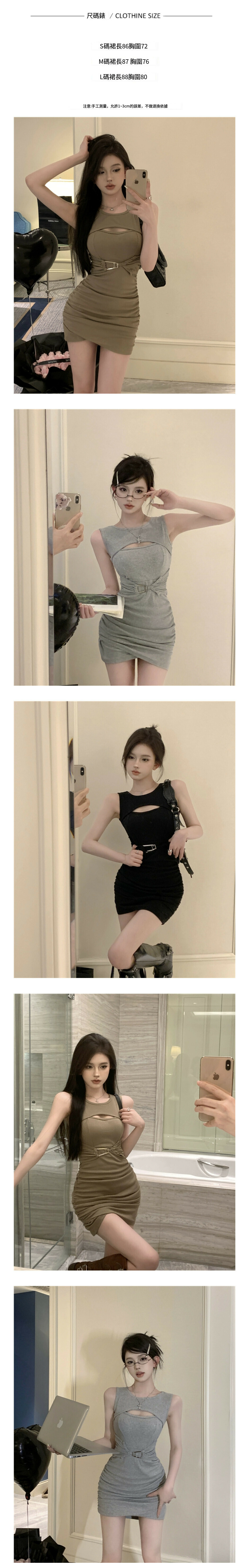 熱賣鏤空收腰連衣裙【卡其】【S-L碼】(下單後請聯絡客服確認發貨尺碼)