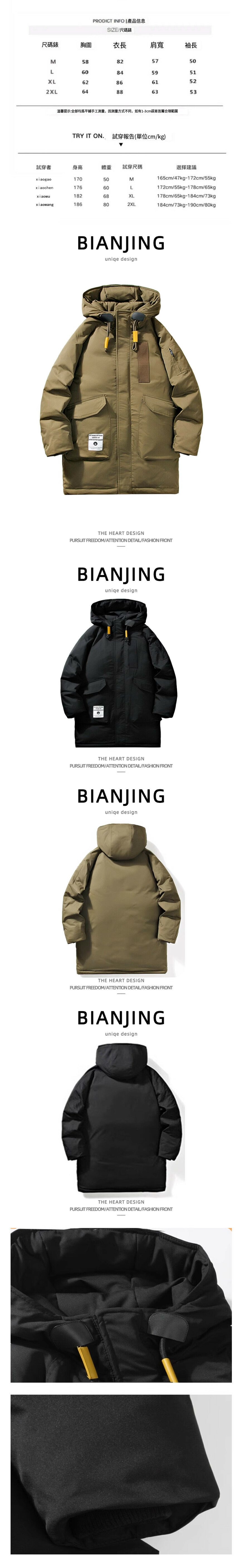 熱賣連帽中長款棉服外套【黑色】(尺碼:S-2XL碼) (下單後請聯絡客服確認發貨尺碼)