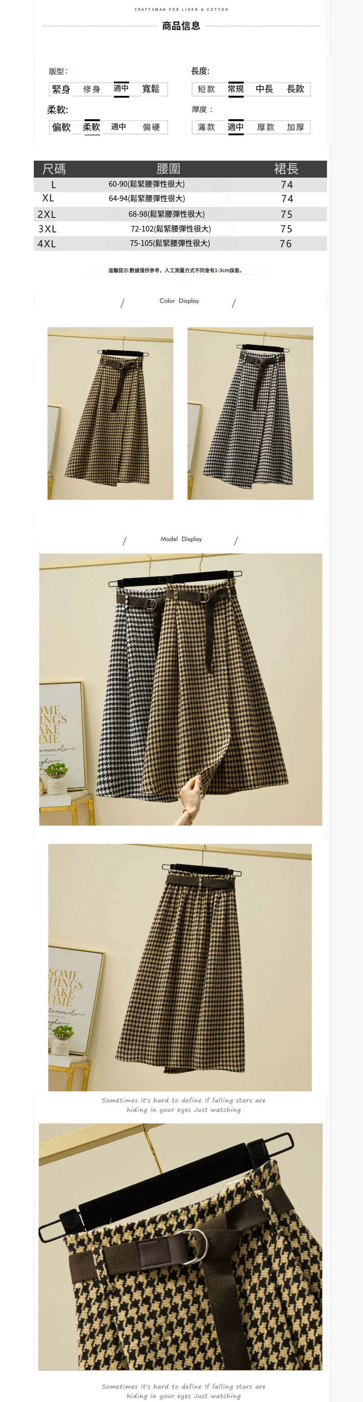 熱賣千鳥格不規則半身裙【黃色】【M-4XL碼】(下單後請聯絡客服確認發貨尺碼)