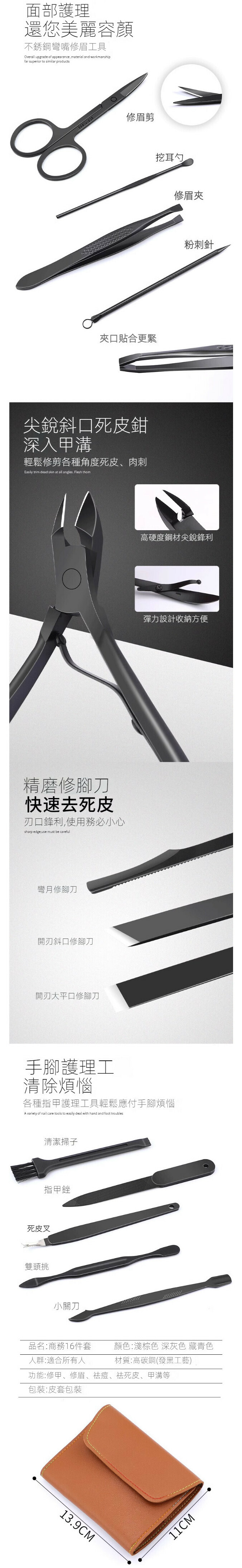 爆款家用指甲刀指甲鉗修甲套裝(深海藍16件套)