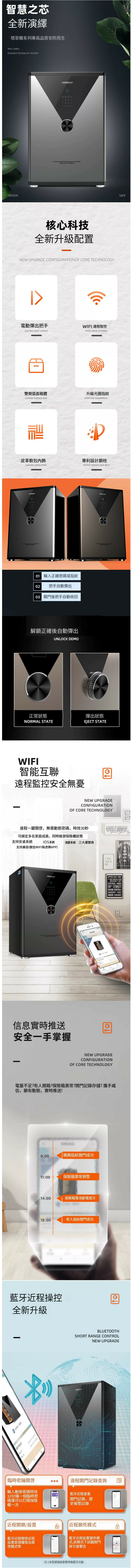 熱賣家用保險箱 夾萬床頭櫃【70CM 亞德里銀 指紋密碼【WIFI遠端】】