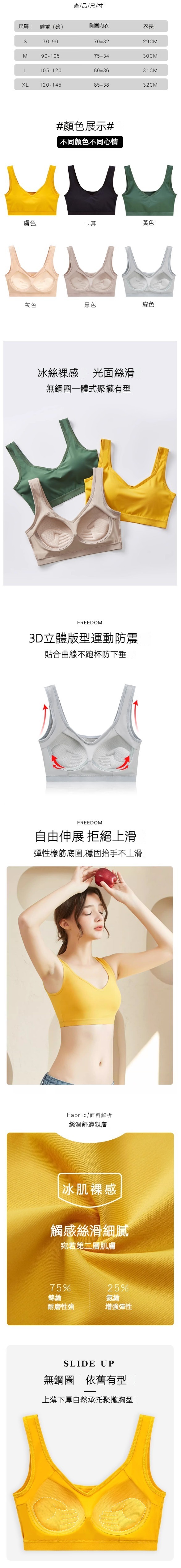 熱賣冰絲防走光聚攏胸圍內衣(黃色)【S-XL碼】【下單後聯絡客服確認發貨尺碼】