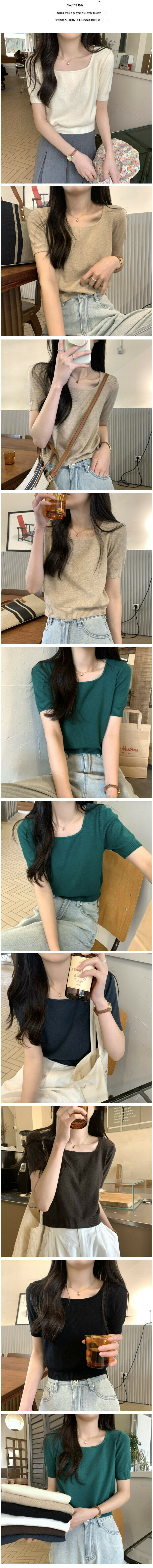 熱賣冰絲方領短袖T恤【咖啡色】【均碼】