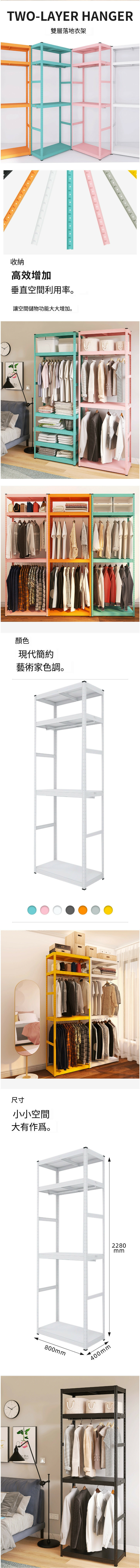 熱賣鐵藝色彩 組合櫃 衣櫃 衣帽架 多層儲物櫃【80x40x228cm】雙層掛衣+雙門櫃 藍色