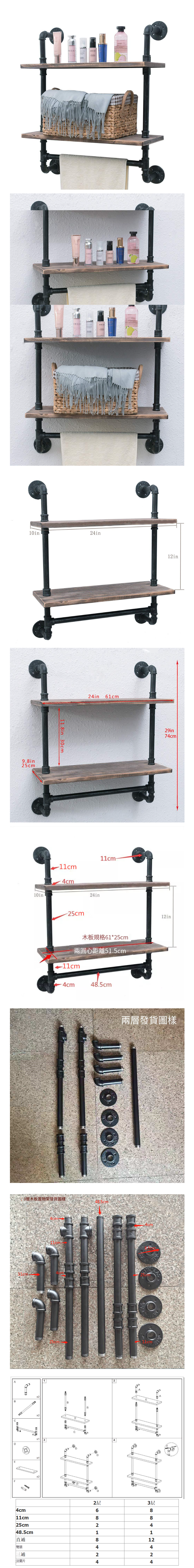 熱賣鐵藝實木隔板層架牆上置物架浴室毛巾架(黑色兩層,74*61cm)