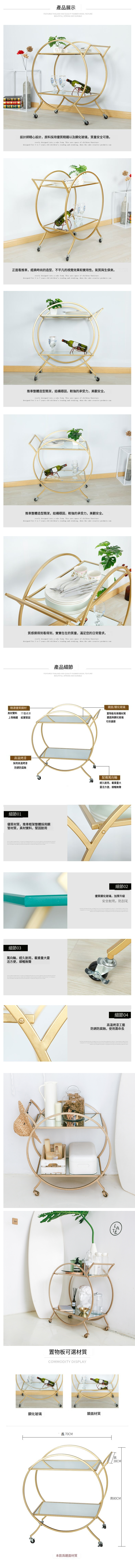 熱賣鐵藝手推車移動餐邊櫃酒水架(金色,70*80cm)