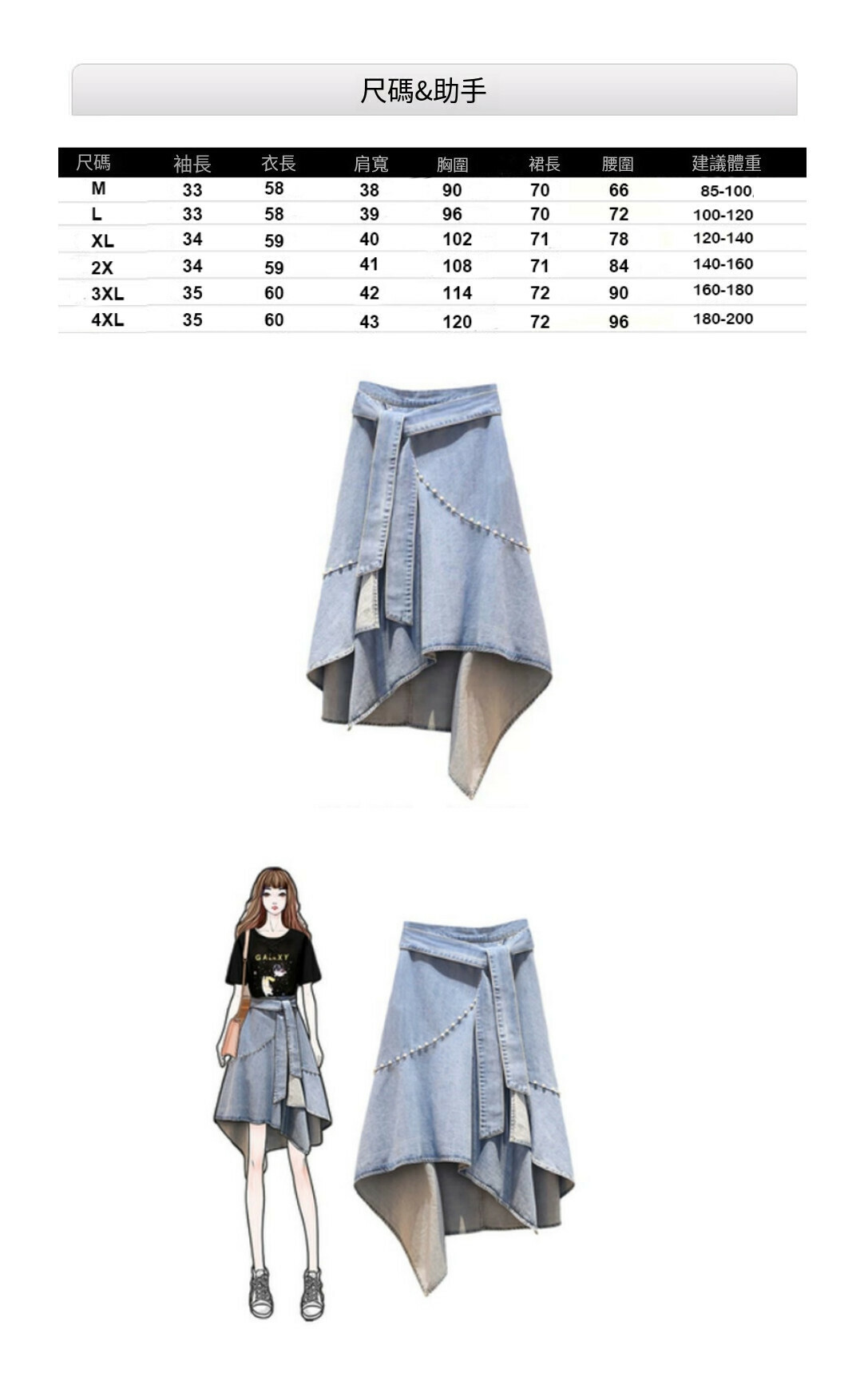 熱賣不規則牛仔半身裙【藍色】【M-4XL碼】(下單後請聯絡客服確認發貨尺碼)