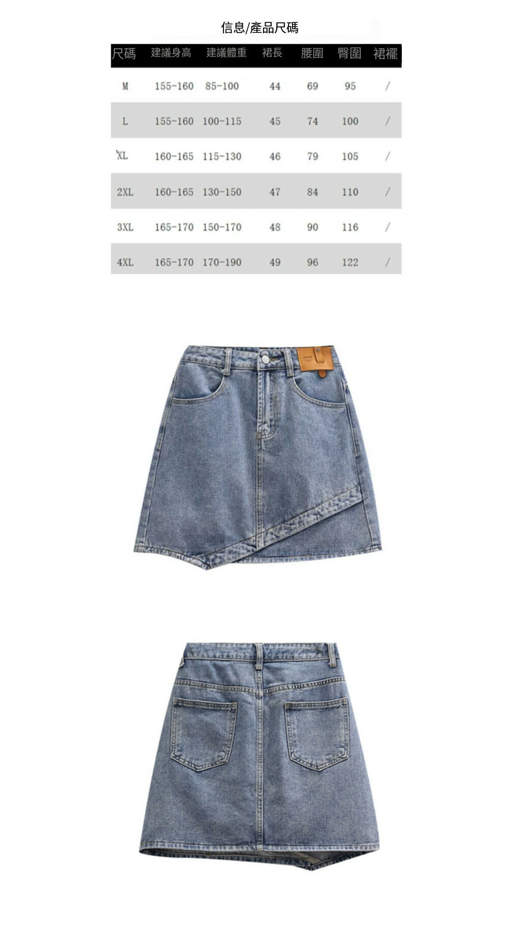 熱賣不規則牛仔半身裙【藍色】【M-4XL碼】(下單後請聯絡客服確認發貨尺碼)