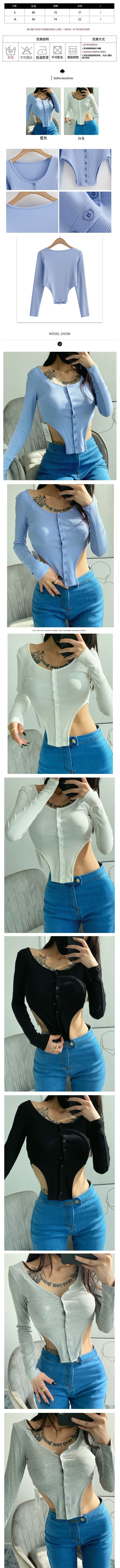 熱賣不規則下擺長袖排扣T卹(藍色)(S/M碼)(下單後聯絡客服確認發貨尺碼)