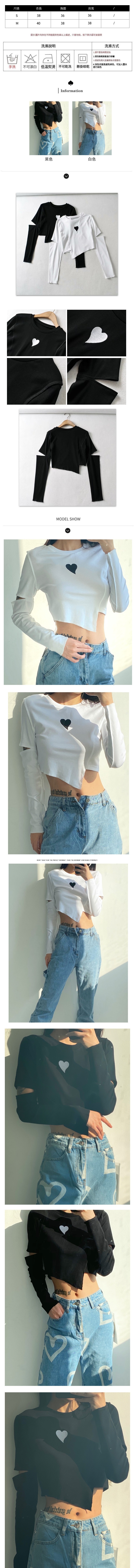 熱賣不規則愛心刺繡打底T卹(白色)(S/M碼)(下單後聯絡客服確認發貨尺碼)