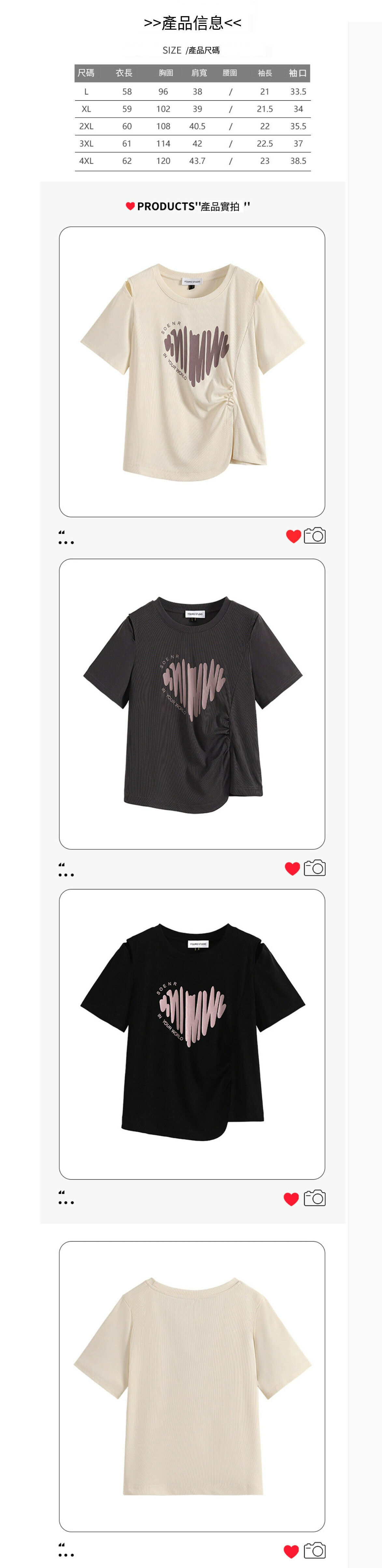 熱賣抽褶不規則t恤【杏色】【L-4XL碼】(下單後請聯絡客服確認發貨尺碼)