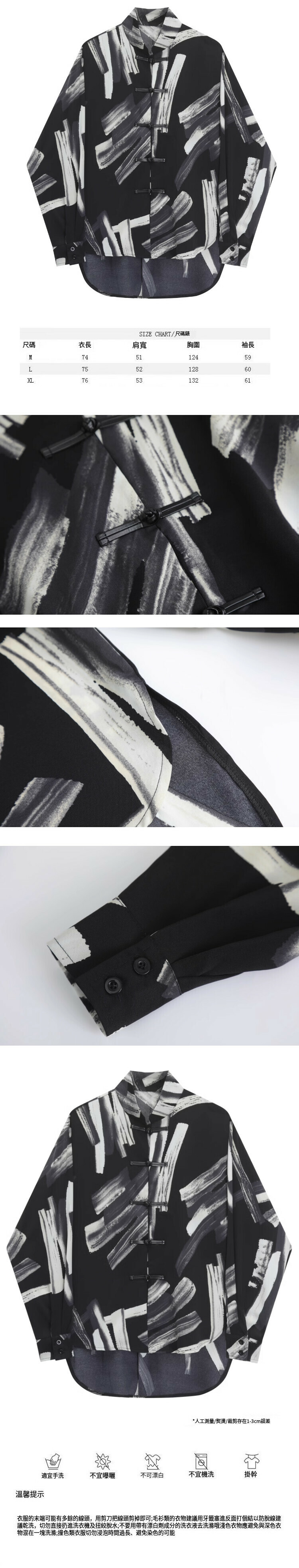 熱賣不規則印花盤扣立領襯衫(黑色)(M-XL碼)(下單後聯絡客服確認發貨尺碼)