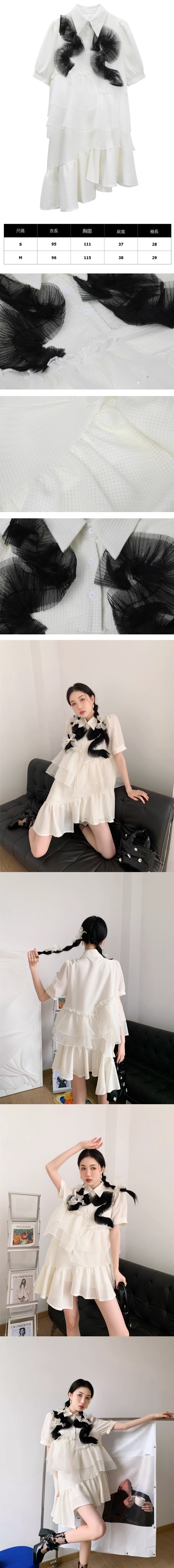熱賣不規則襯衫泡泡袖連衣裙(白色)(S-L碼)(下單後聯絡客服確認發貨尺碼)