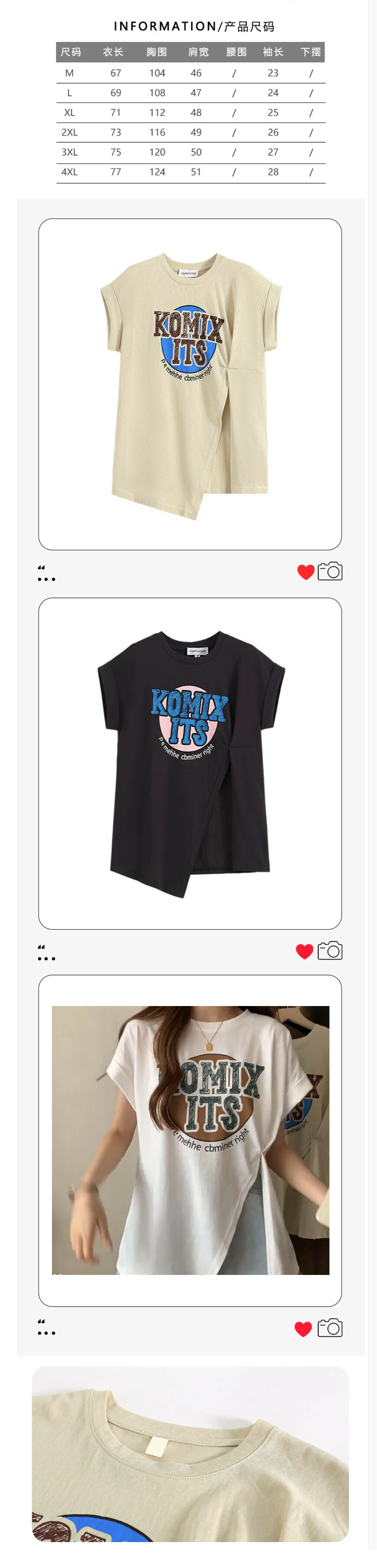 熱賣不規則開叉短袖T恤【白色】【M-4XL碼】(下單後請聯絡客服確認發貨尺碼)