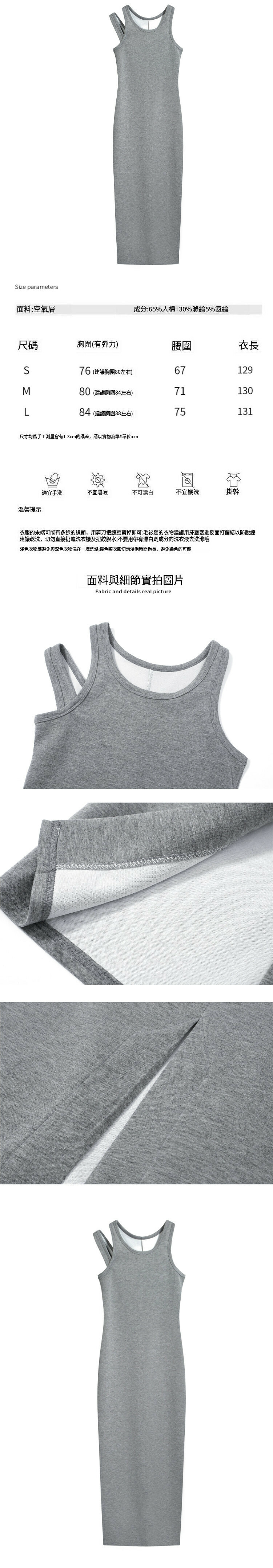 熱賣不規則開叉吊帶長裙(灰色)(S-L碼)(下單後聯絡客服確認發貨尺碼)