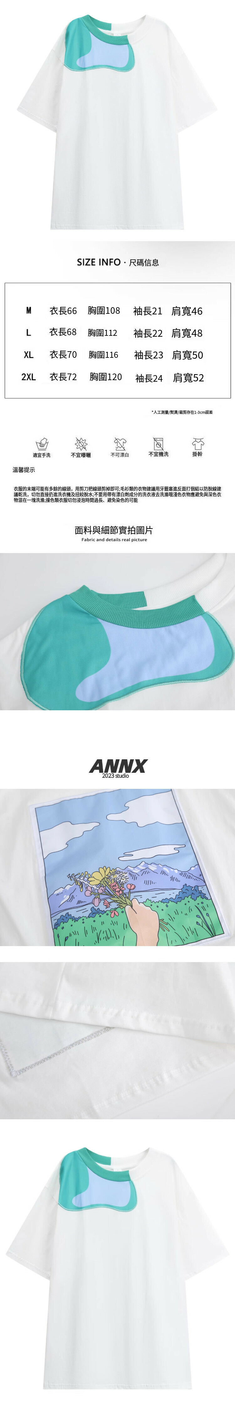 熱賣不規則拼接撞色圓領T恤(白色)(M-2XL碼)(下單後聯絡客服確認發貨尺碼)