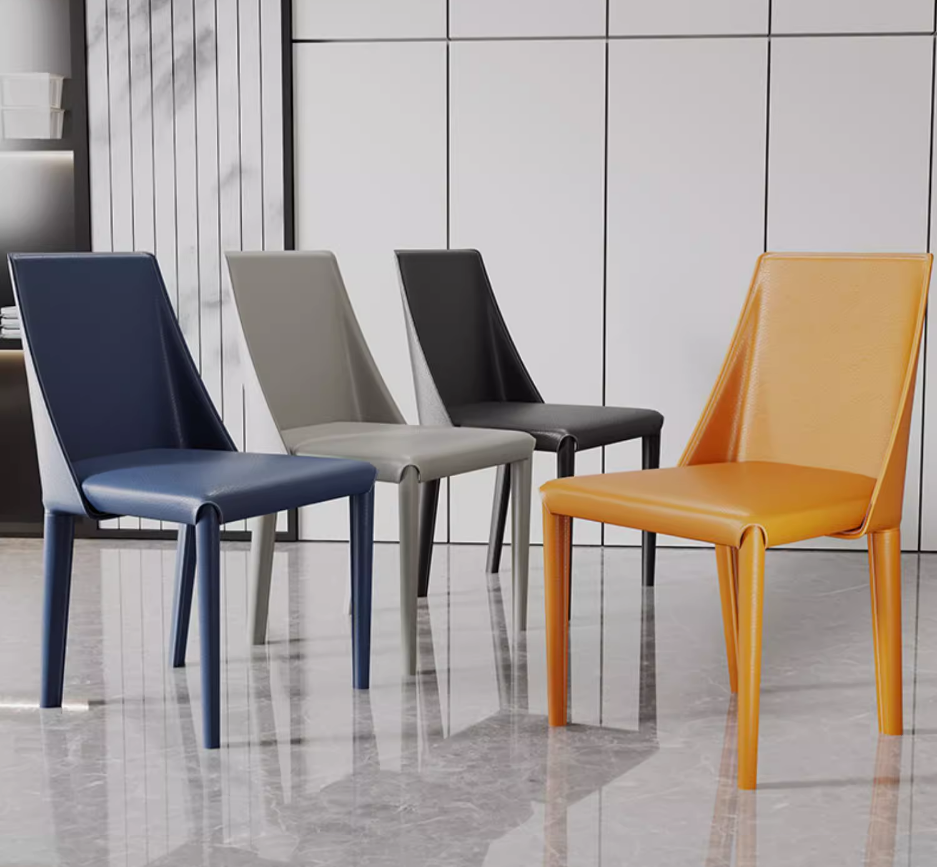 熱賣意式輕奢全包裹馬鞍皮靠背餐椅(桔色)(尺寸:高82CM,坐寬45CM)