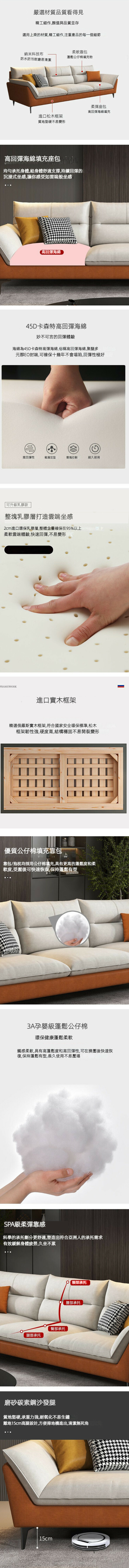 熱賣意式輕奢科技布布藝沙發(顏色:暮光橙+米白色,大四人位【300cm】)(舒適乳膠坐墊【大坐深加寬版】)