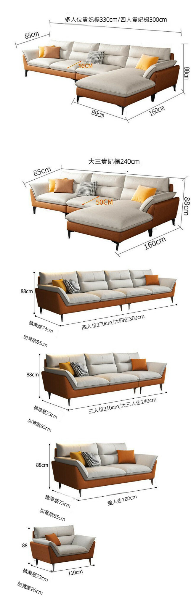 熱賣意式輕奢科技布布藝沙發(顏色:暮光橙+米白色,單人位【110cm】)(舒適乳膠坐墊【標準版】)