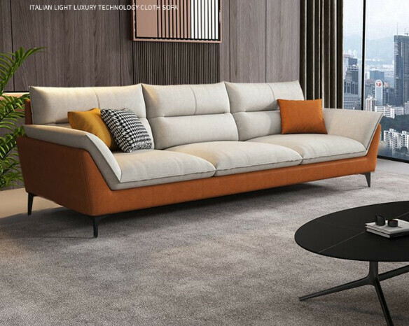 熱賣意式輕奢科技布布藝沙發(顏色:暮光橙+米白色,三人位【210cm】)(高回彈海綿坐墊【大坐深加寬版】)