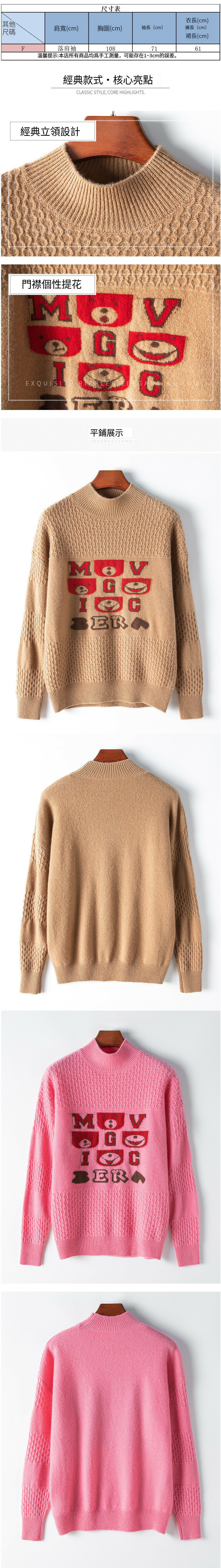 熱賣提花圓領羊毛針織衫(均碼)(玫粉色)