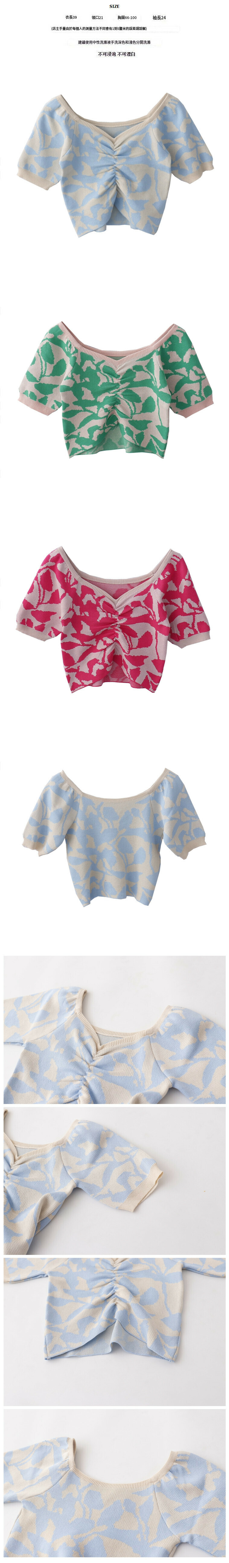 熱賣提花V領針織T恤【玫紅色】【均碼】