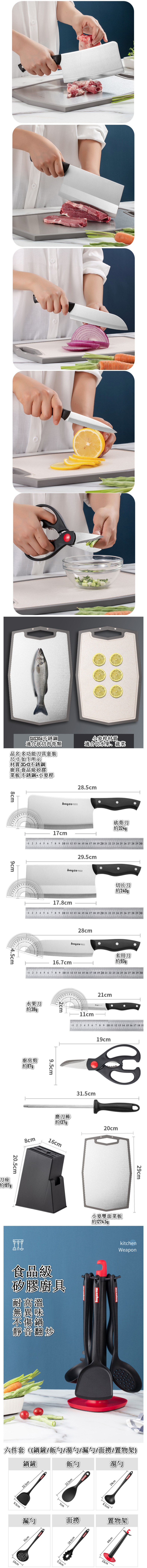 熱賣廚房不銹鋼刀具8件套裝(黑柄家用菜刀斬骨切片刀+防黴菜板)