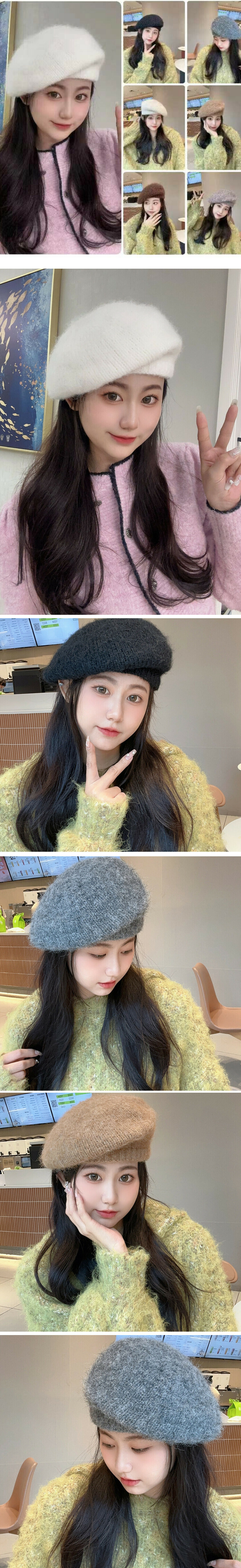 熱賣針織貝雷帽【E-423米色馬海毛針織貝雷帽】