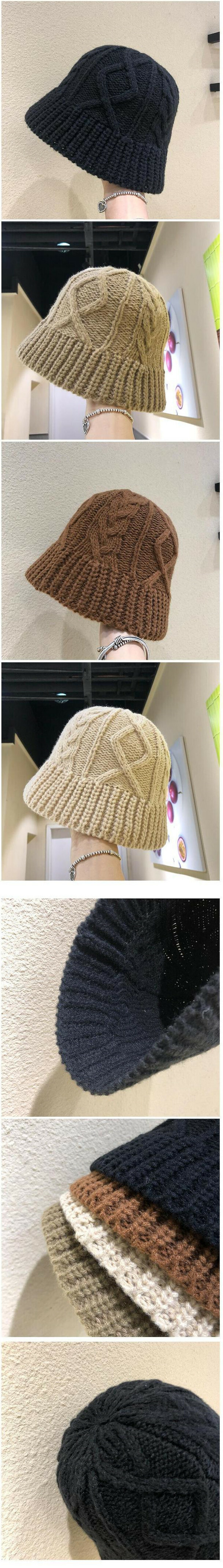熱賣針織水桶帽套頭勾花短簷漁夫帽(均碼(56-58cm)米色四邊線條線絨水筒)