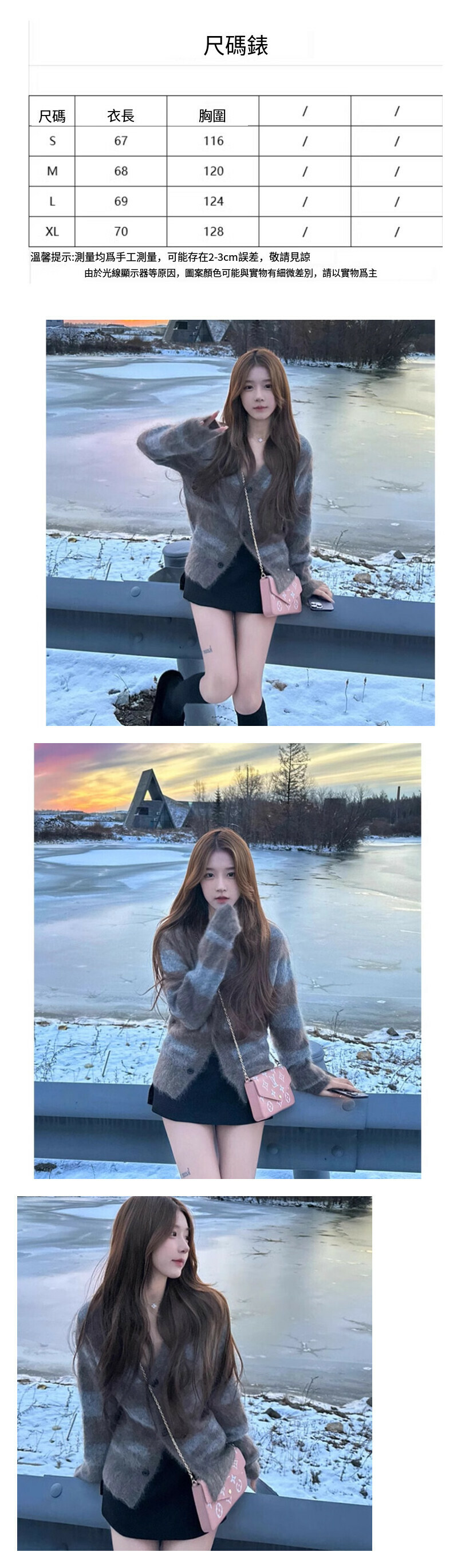 熱賣針織開衫外套【灰藍條紋】尺碼【S碼—XL碼】【下單後請聯絡客服確認發貨尺碼】
