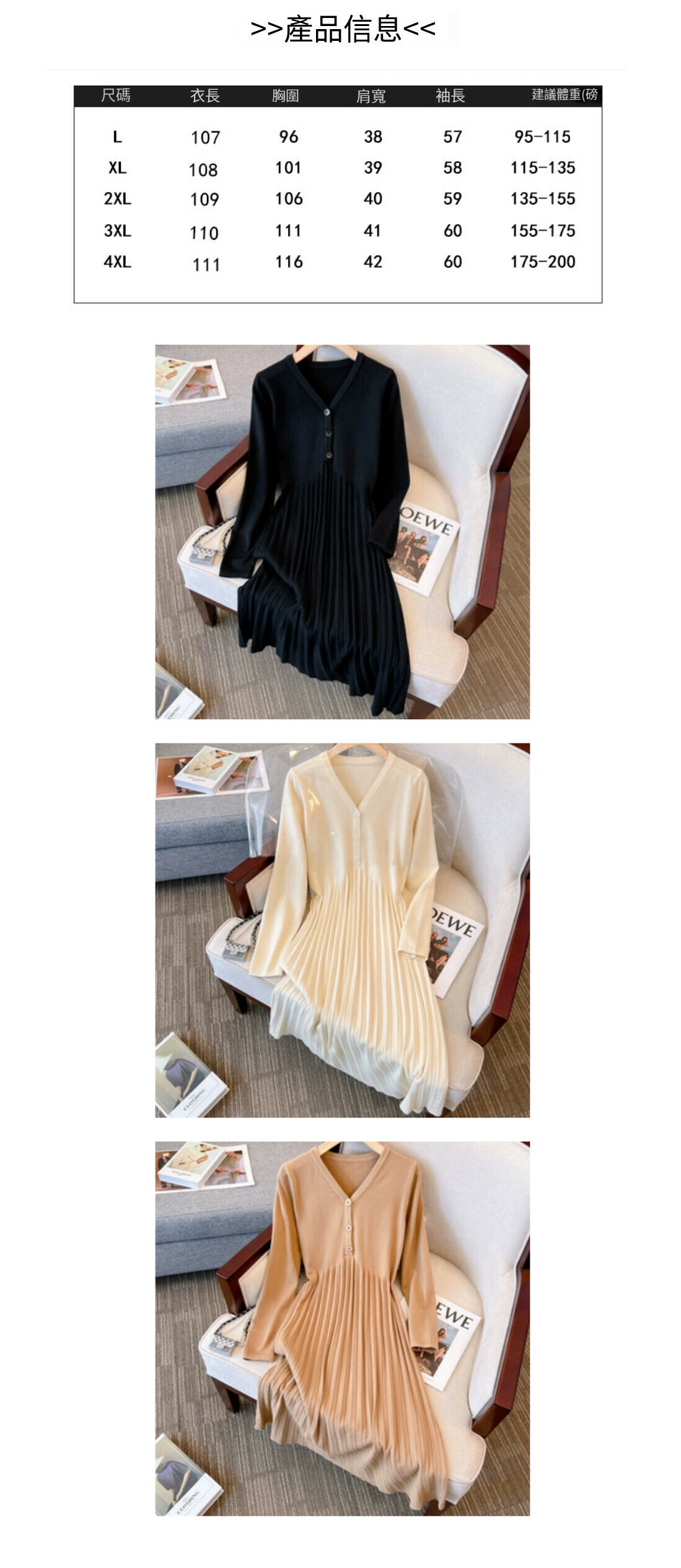 熱賣針織連衣裙【杏色】【L-4XL碼】(下單後請聯絡客服確認發貨尺碼)