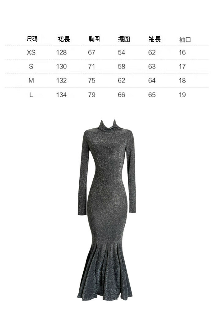 熱賣針織魚尾連衣裙【銀色】尺碼【S碼—L碼】【下單後請聯絡客服確認發貨尺碼】