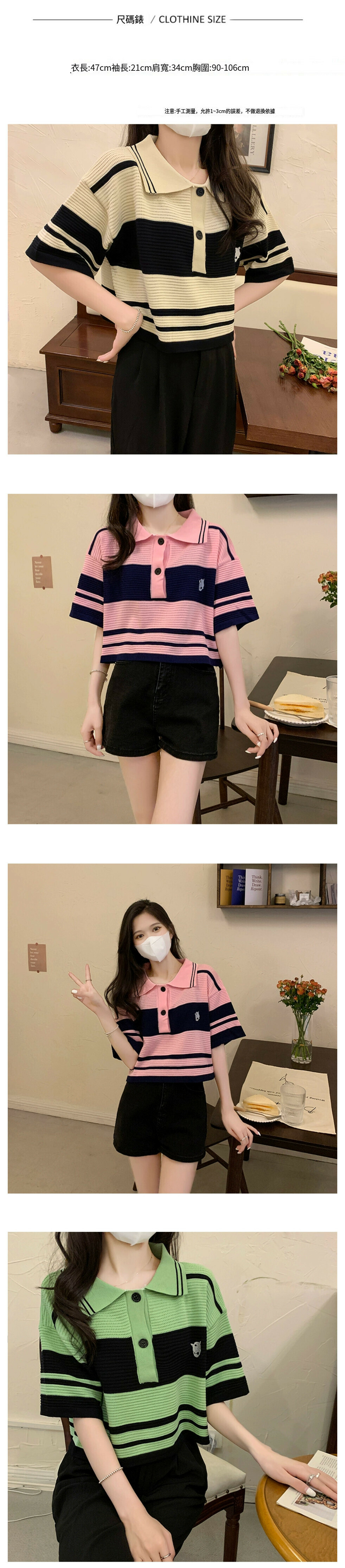 熱賣針織條紋polo短袖T恤【綠色】【均碼】