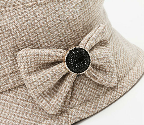 熱賣韓版圓頂格紋貝雷帽女(米色)