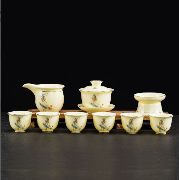 熱賣功夫茶具(寶石黃荷韻寬口杯套組)