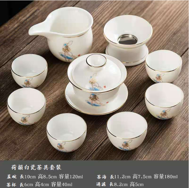 熱賣功夫茶具(羊脂玉荷韻鼓口杯套組)