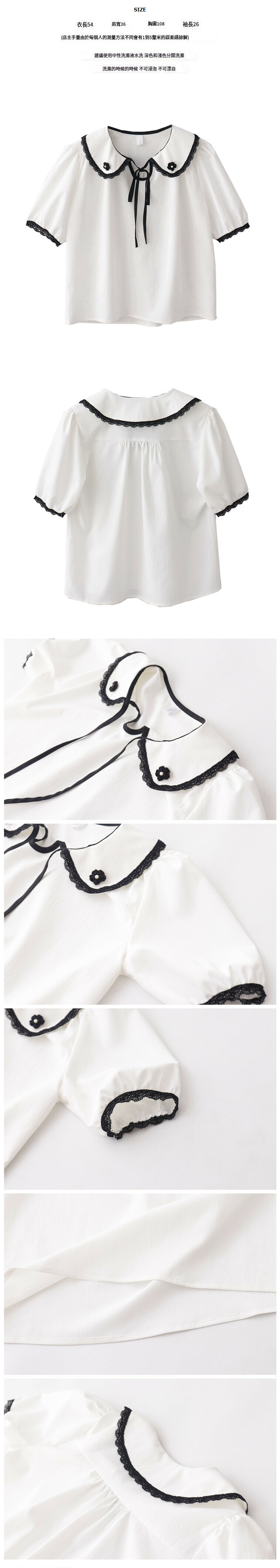 熱賣蕾絲花邊蝴蝶結系帶襯衫【白色】【均碼】