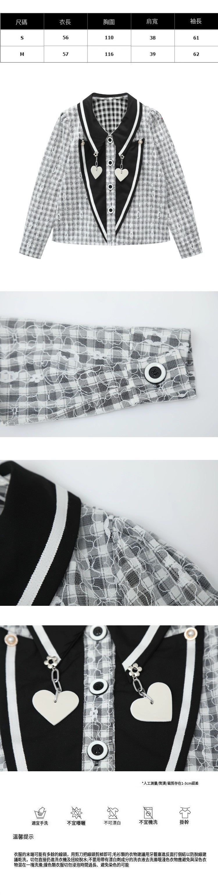 熱賣蕾絲掛鏈格子長袖襯衣(圖片色)(S-L碼)(下單後聯絡客服確認發貨尺碼)