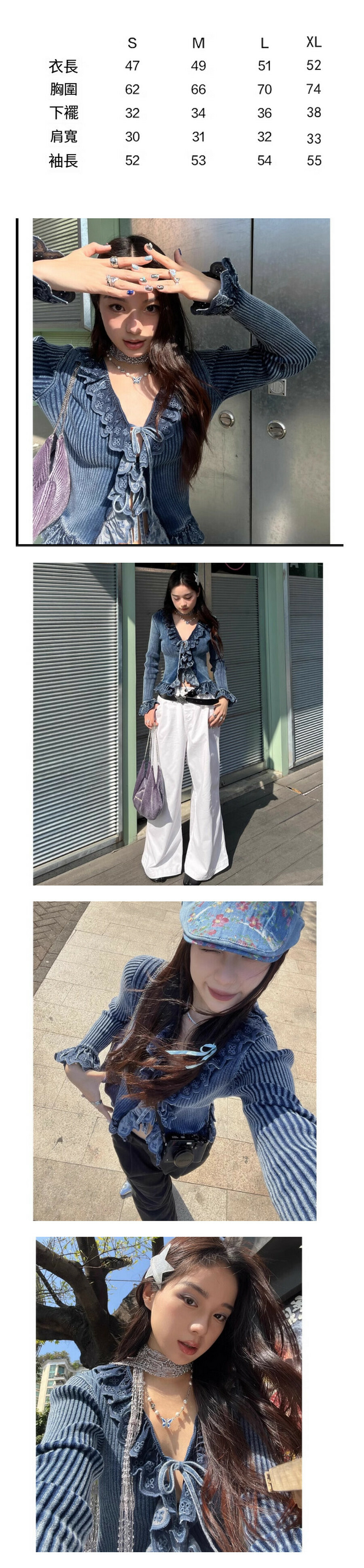 熱賣花邊針織開衫【藍色】尺碼【S碼—XL碼】【下單後請聯絡客服確認發貨尺碼】