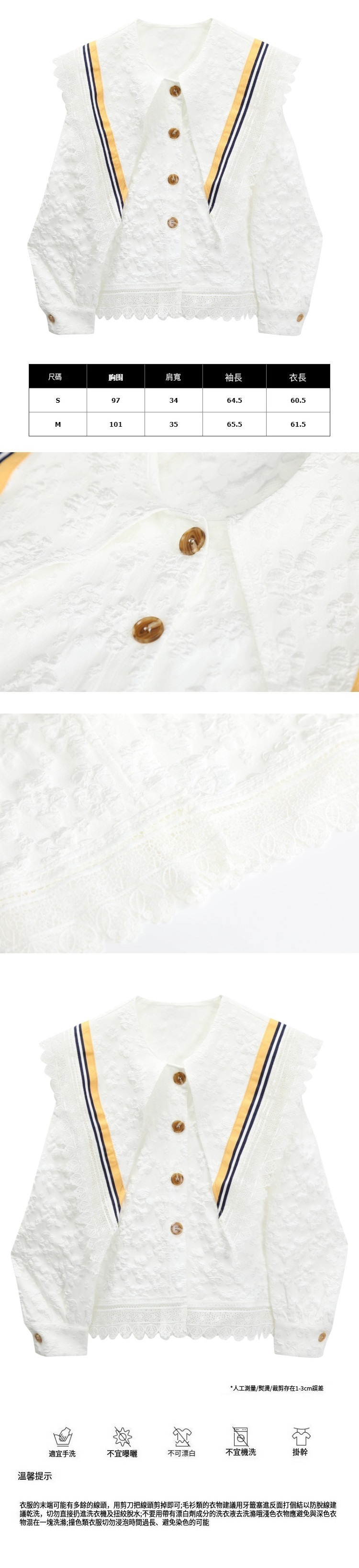 熱賣蕾絲花邊海軍領襯衫(圖片色)(S-L碼)(下單後聯絡客服確認發貨尺碼)